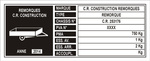 Tabliczka znamionowa przyczepa Remorques C.R. Construction