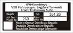 Tabliczka znamionowa SIMSON DUO 4-1 VEB Fahrz.