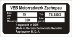 Tabliczka znamionowa Mercedes W111.010 typ 230