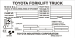 Tabliczka znamionowa Toyota forklift truck, wózek widłowy
