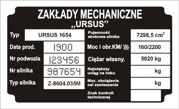 Tabliczka znamionowa URSUS C1654 z grawerem