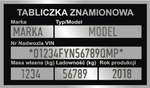 Tabliczka znamionowa ze znakowaniem do pojazdów i przyczep