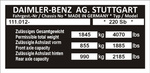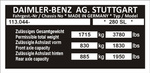 Tabliczka znamionowa Mercedes W107, W108, W109, W110