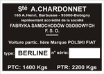 Tabliczka znamionowa Polski Fiat 126p (Fiat Auto Poland)