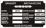 Tabliczka znamionowa URSUS C335