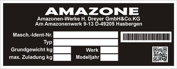 Tabliczka znamionowa do pojazdów i maszyn marki AMAZONE czysta
