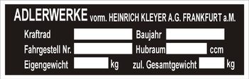 Tabliczka znamionowa Adler MB 200, MB 250, M200, M250, M100, M201 czysta