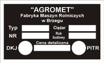 Tabliczka znamionowa Agromet fabryka maszyn rolniczych Darłowo wersja 1