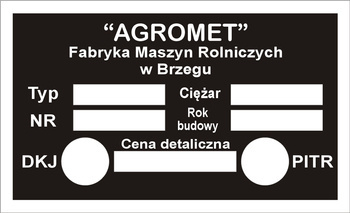 ( ilość produktów: 9 )Tabliczka znamionowa Agromet Darłowo wersja 2
