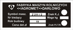 Tabliczka znamionowa Agromet Darłowo wersja 2