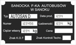 Tabliczka znamionowa Sanocka Fabryka Autobusów ze znakowaniem