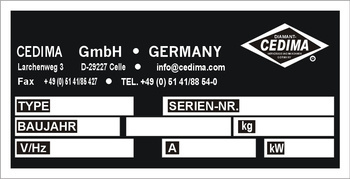 Tabliczka znamionowa do przyczep i maszyn CEDIMA