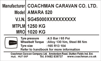 Tabliczka znamionowa Coachman Caravan Co. Ltd.