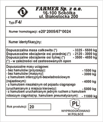 Tabliczka znamionowa do pojazdów i maszyn marki FARMER