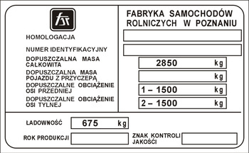 Tabliczka znamionowa Fabryka samochodów rolniczych w Poznaniu