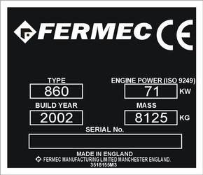 Tabliczka znamionowa do maszyn budowlanych marki Fermec