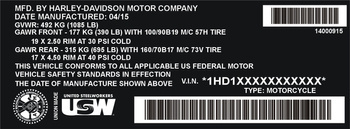 Tabliczka, naklejka znamionowa informacyjna Harley Davidson Motor Company