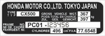 Tabliczka znamionowa Honda Motor Tokyo Japan CX500