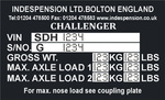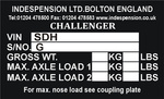 Tabliczka znamionowa do maszyn i przyczep marki Indespension Ltd