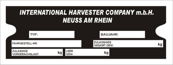Tabliczka znamionowa do pojazdów i maszyn marki International Harvester Company