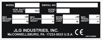 ( ilość produktów: 1 )Tabliczka znamionowa do pojazdów i maszyn marki JLG Industries
