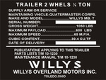 ( ilość produktów: 2 )Tabliczka znamionowa JEEP Willys MB (Ford GPW)