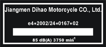 ( ilość produktów: 2 )Tabliczka znamionowa do skuterów i motocykli Jiangmen Dihao Motorcycle Co. Ltd. z grawerem