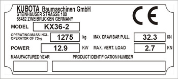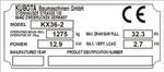 Tabliczka znamionowa do maszyn marki Kubota Baumaschinen