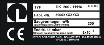 ( ilość produktów: 1 )Tabliczka znamionowa do maszyn i urządzeń LEYBOLD VACUUM GMBH