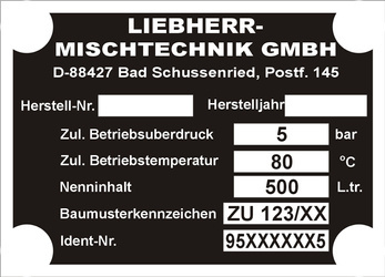 Tabliczka znamionowa do pojazdów i maszyn marki LIEBHERR