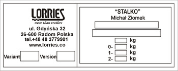 Naklejka tabliczka znamionowa do przyczep Lorries