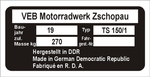 Tabliczka znamionowa MZ TS 150