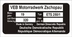 Tabliczka znamionowa MZ ES 250
