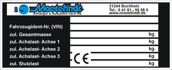 Tabliczka znamionowa do przyczep marki Moetefindt