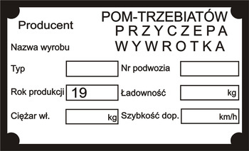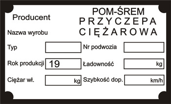 ( ilość produktów: 4 )Tabliczka znamionowa POM SREM do przyczepy wywrotki