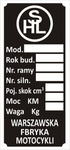 Tabliczka znamionowa SHL 125 M04 Warszawa