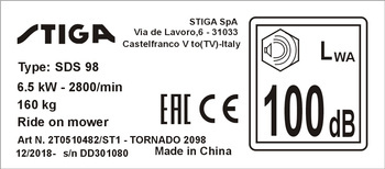 Naklejka informacyjna do maszyn i urządzeń Stiga