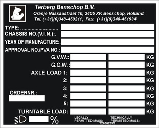 ( ilość produktów: 1 )Tabliczka znamionowa do maszyn i urządzeń Terberg Benschop B.V.