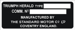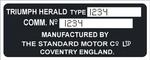 Tabliczka znamionowa do motocykla Triumph Herald czysta