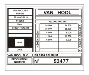 Tabliczka znamionowa do pojazdów i przyczep marki Van Hool