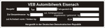 Tabliczka znamionowa Wartburg czysta wzór 1