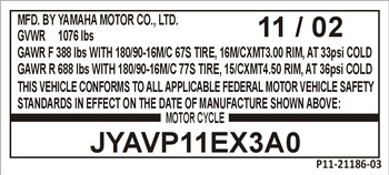 Tabliczka znamionowa do motocykli Yamaha Motor CO., LTD.