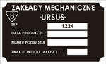 Tabliczka znamionowa do ciągnika URSUS ze znakowaniem - każdy model